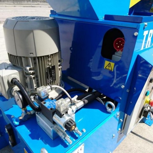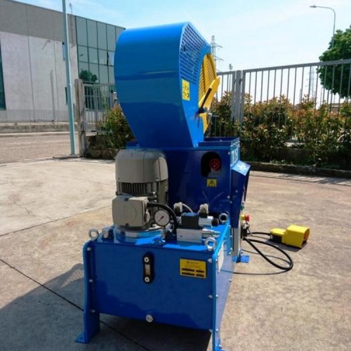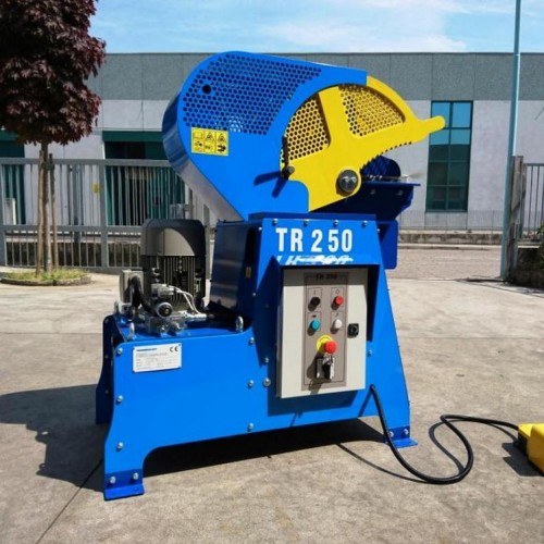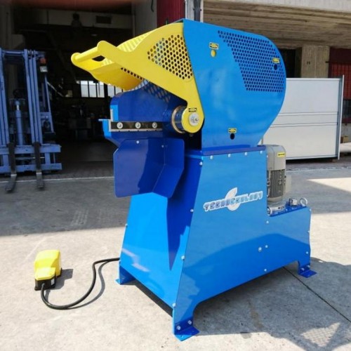 Specificații Consum de energie 380 Volți / 4 kW Greutate 350 kg Lungime lamă 250 mm Dimensiuni generale Înălțime 1200 mm, Lățime 1100 x 700 mm Forță 350 kN la 80 mm de la punctul de sprijin Cicluri pe minut 17 tăieturi tecnoecology.com/en/prodotto/tr-250/...