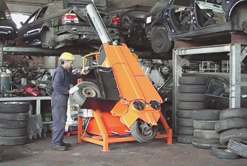 Echipament automat pentru separarea anvelopei de jantă cu un număr de 120 de cicluri de lucru. Diametrul minim și maxim al anvelopelor de tratat este de 12”-22”. Această mașină este concepută pentru a separa anvelopa de jantă într-un mod ușor și sigur. Presa de roți reduce volumul fierului și îl presează gata pentru cuptoare. Presa de roți poate procesa de la 80 la 140 de roți pe oră.